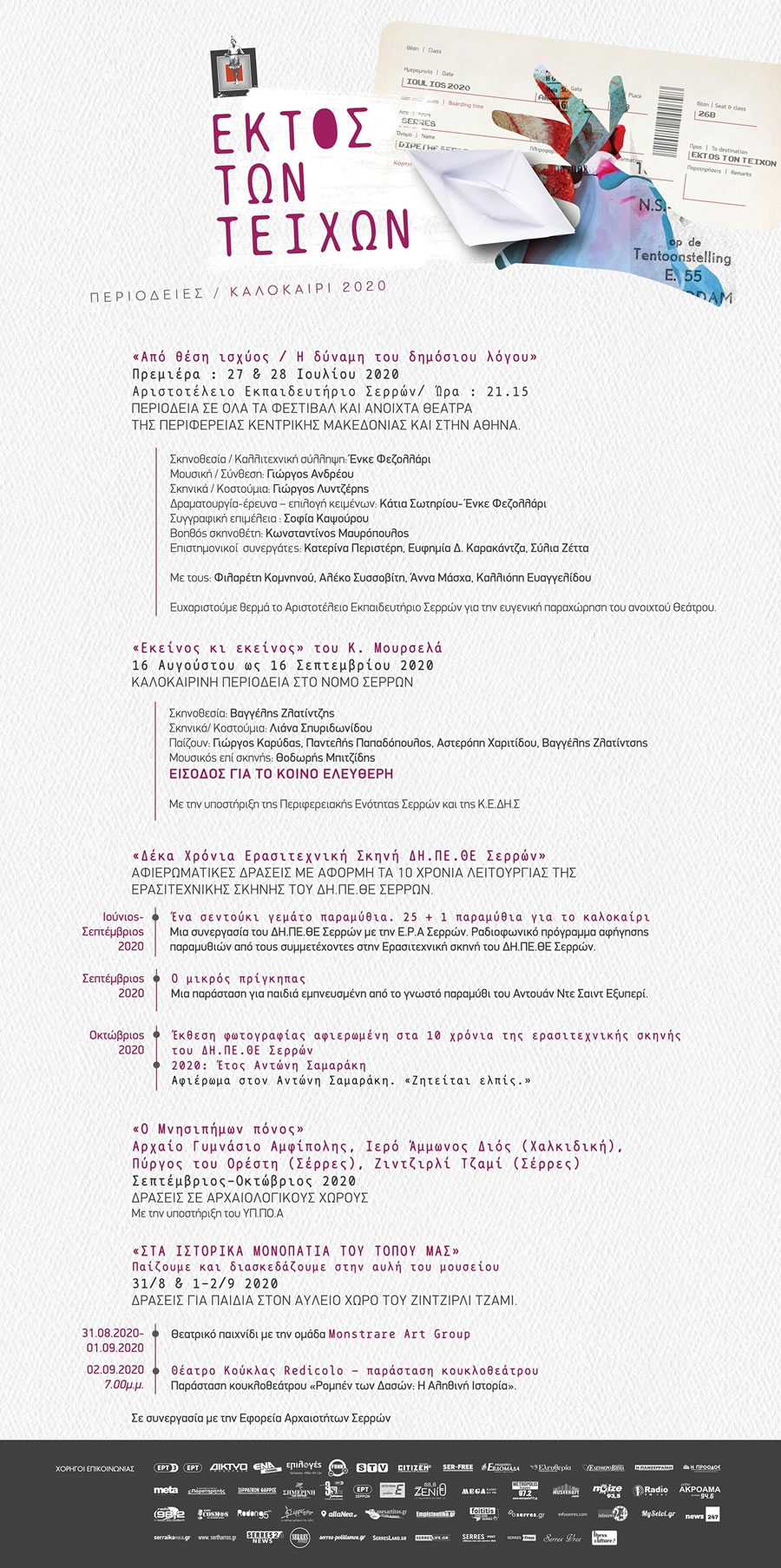 Πρόγραμμα για το Καλοκαίρι 2020 «ΕΚΤΟΣ ΤΩΝ ΤEΙΧΩΝ»
