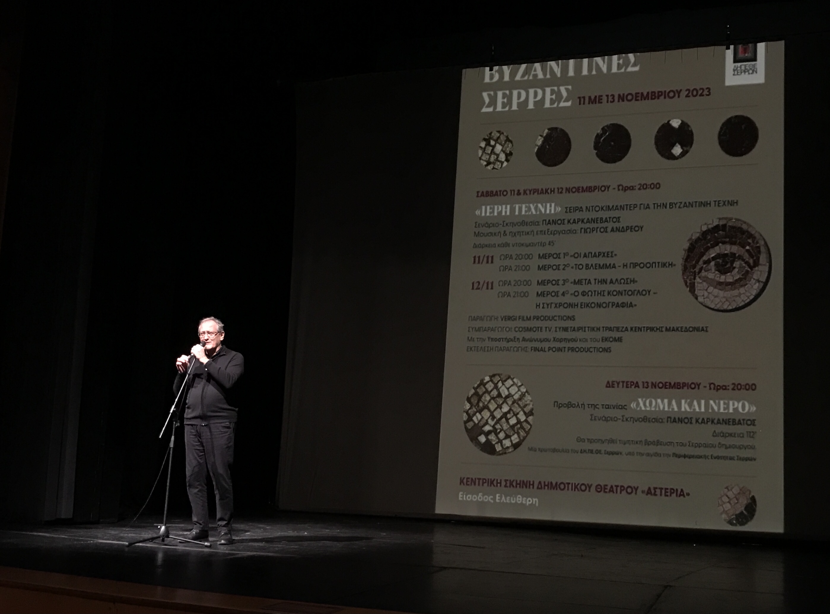 Τόσο τα ντοκιμαντέρ για την βυζαντινή τέχνη - «ΙΕΡΗΤΕΧΝΗ» - όσο και η ταινία μυθοπλασίας «ΧΩΜΑ ΚΑΙ ΝΕΡΟ» προσέφεραν στο σερραϊκό κοινό μια συνδυαστική ευκαιρία ψυχαγωγίας και πολιτιστικής επιμόρφωσης.
