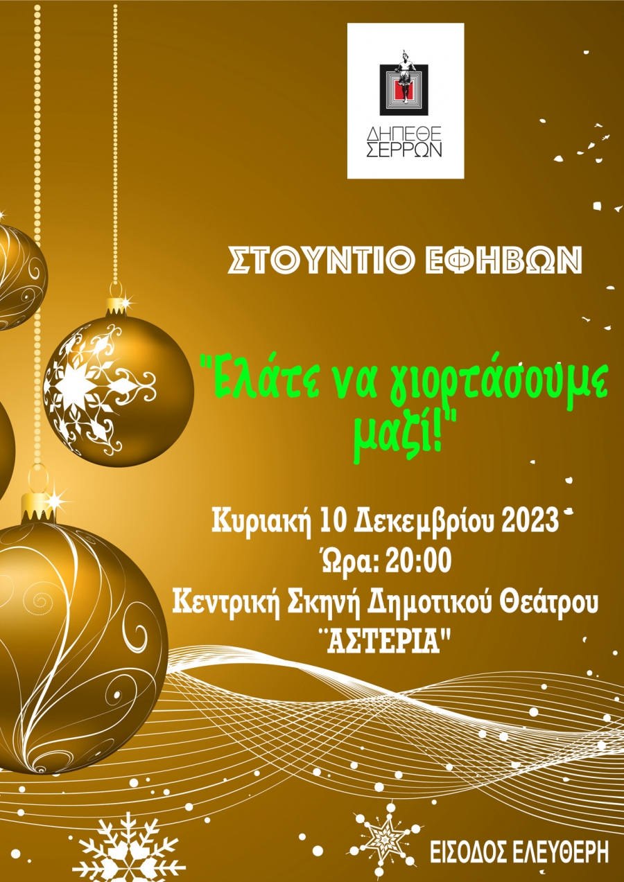 εν όψει των εορτών προσκαλεί τους μικρούς και μεγάλους φίλους του να γιορτάσουν όλοι μαζί με χορό, τραγούδι και παραμύθια τα φετινά Χριστούγεννα.