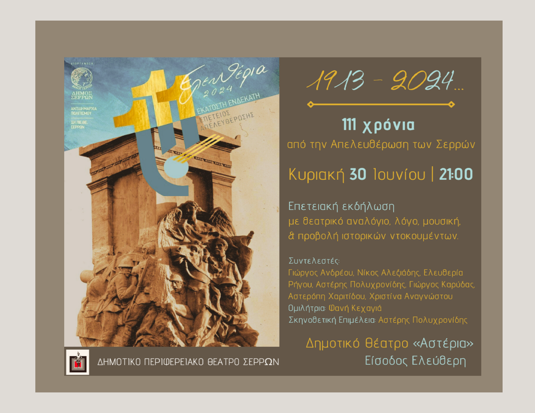 Εκδήλωση – Αφιέρωμα στην απελευθέρωση της πόλης των Σερρών στο ΔΗ.ΠΕ.ΘΕ. Σερρών.