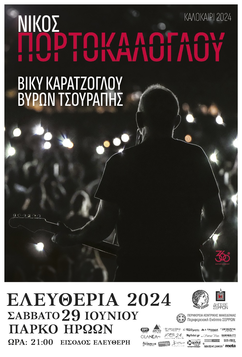 21:00 Επετειακή συναυλία με τον καταξιωμένο καλλιτέχνη Νίκο Πορτοκάλογλου, στο Πάρκο Ηρώων των Σερρών. Είσοδος ελεύθερη για το κοινό