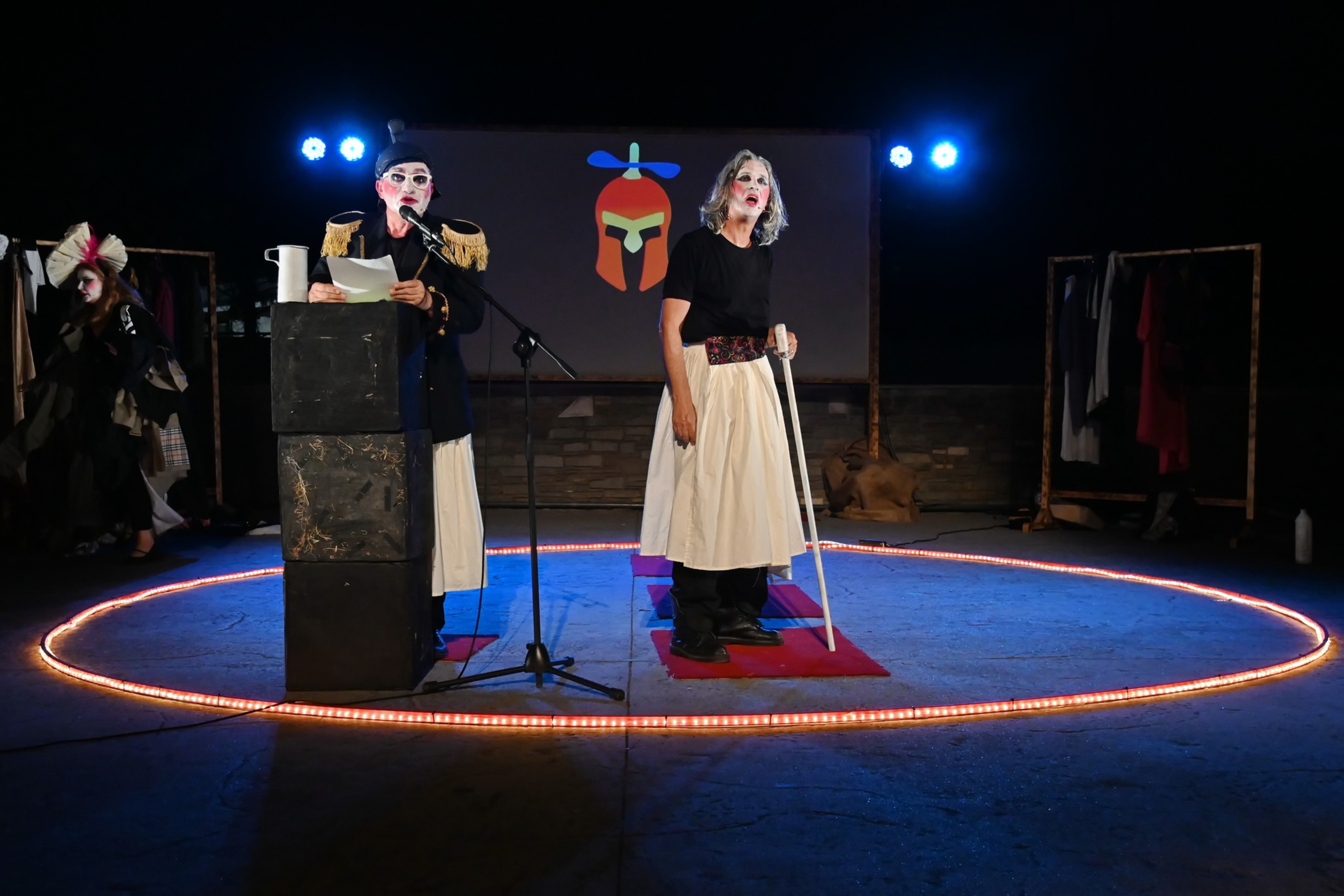Ένας Περιοδεύων Θίασος Θεατρίνων, ένα μπουλούκι έρχεται στον τόπο σας για να σας αφηγηθεί, να τραγουδήσει και να χορέψει την ιστορία της Λυσιστράτη.