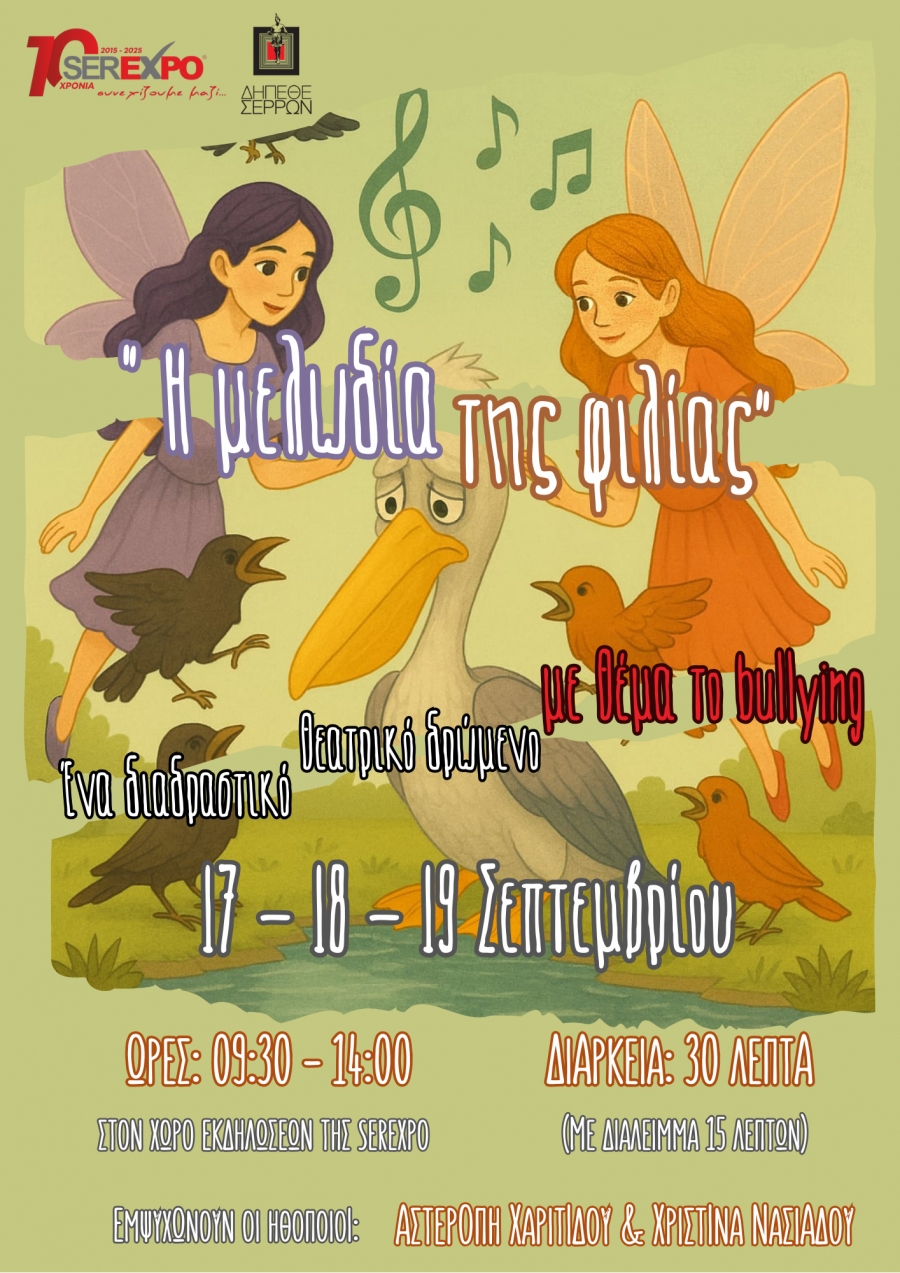 TO ΔΗ.ΠΕ.ΘΕ. ΣΕΡΡΩΝ ΣΤΗ SEREXPO 2025 ME TO ΘΕΑΤΡΙΚΟ ΔΙΑΔΡΑΣΤΙΚΟ ΔΡΩΜΕΝΟ ΓΙΑ ΠΑΙΔΙΑ "Η ΜΕΛΩΔΙΑ ΤΗΣ ΦΙΛΙΑΣ"