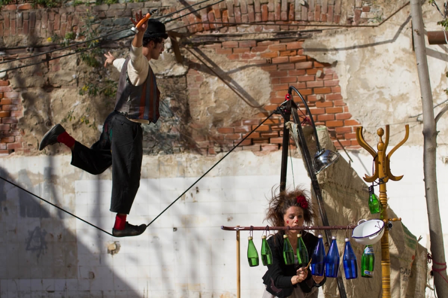 Παράσταση δρόμου με παντομίμα και τσίρκο